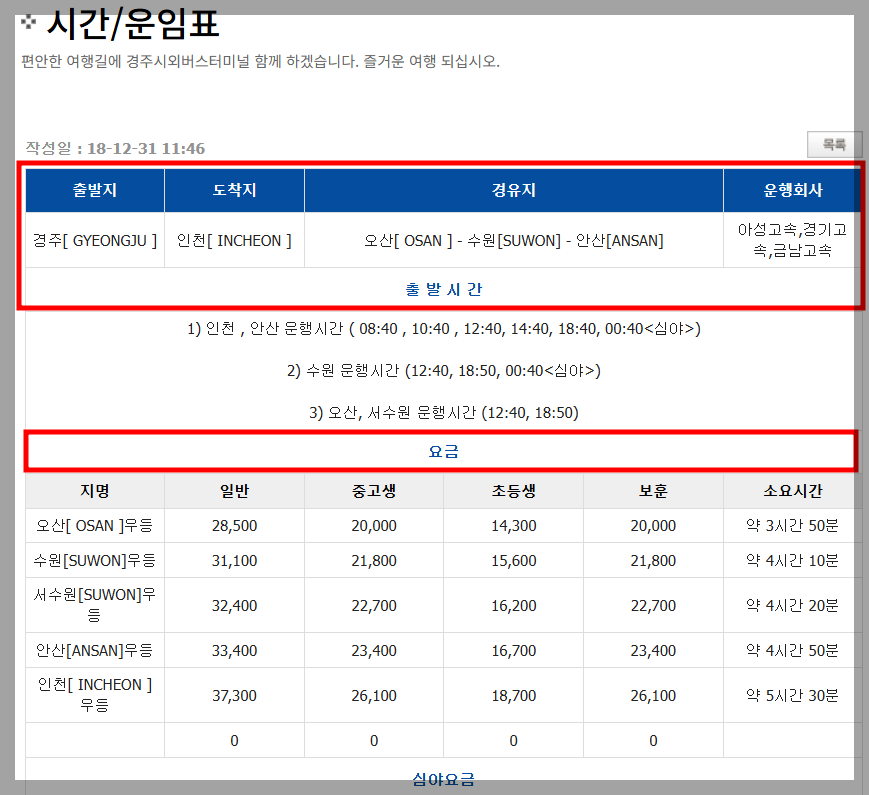 Q: 경주시외버스터미널 시간표는 어디서 확인하나요?