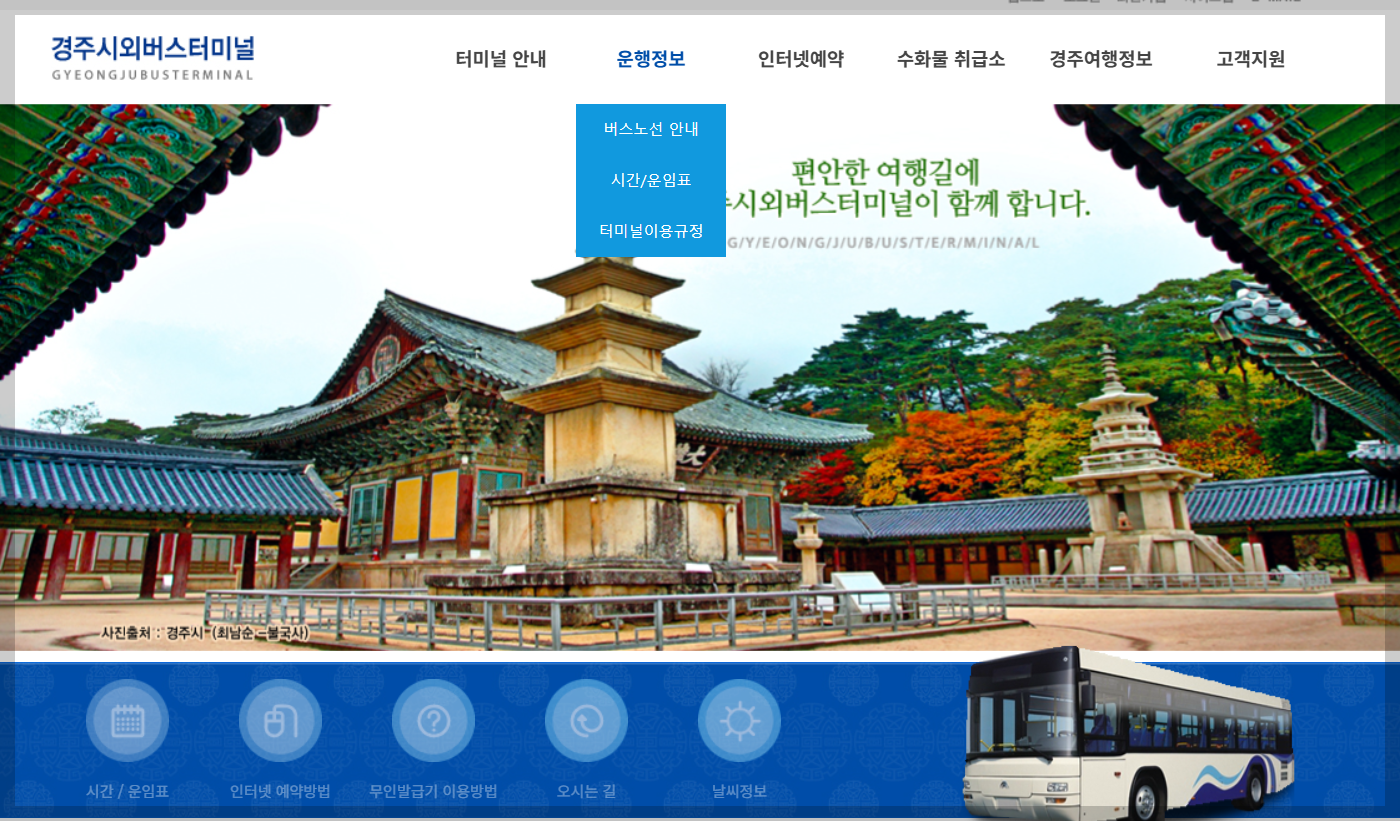 시외버스 노선 확인하는 방법은 먼저 경주시외버스 터미널 홈페이지에 접속해주세요
